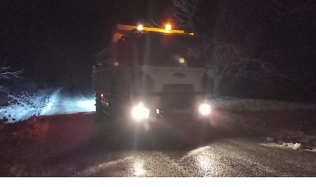 Kar yağışı nedeniyle yollarda oluşabilecek buzlanmaya karşı tedbir alan takımlar, tıpkı vakitte yolda kalan vatandaşlara da anında dayanak sağlıyor. Büyükşehir Belediyesi takımları, bilhassa yayla yolları ve kırsal temas güzergâhlarında ulaşımın kesintisiz devam etmesi için gece gündüz demeden vazife yapıyor.